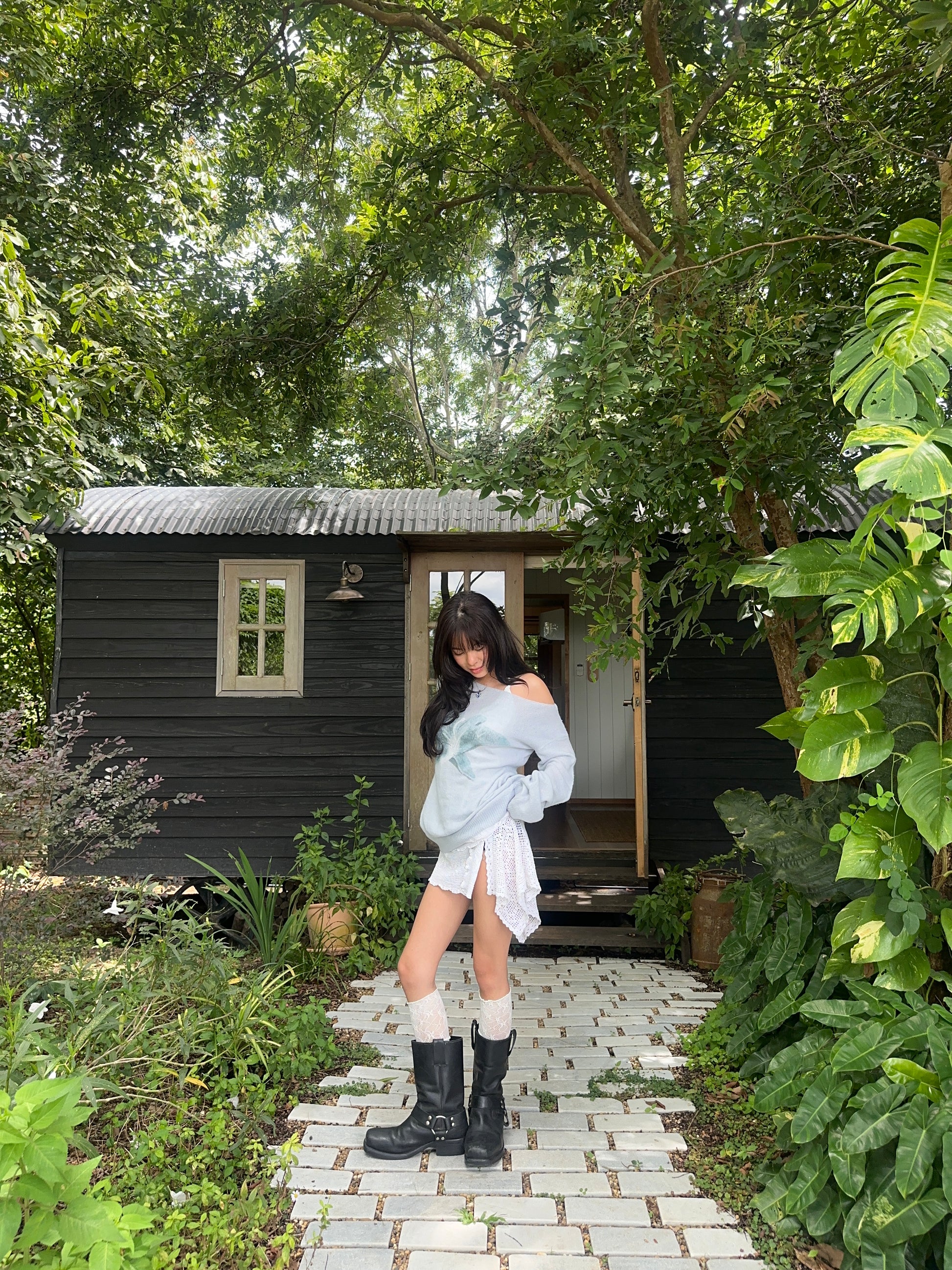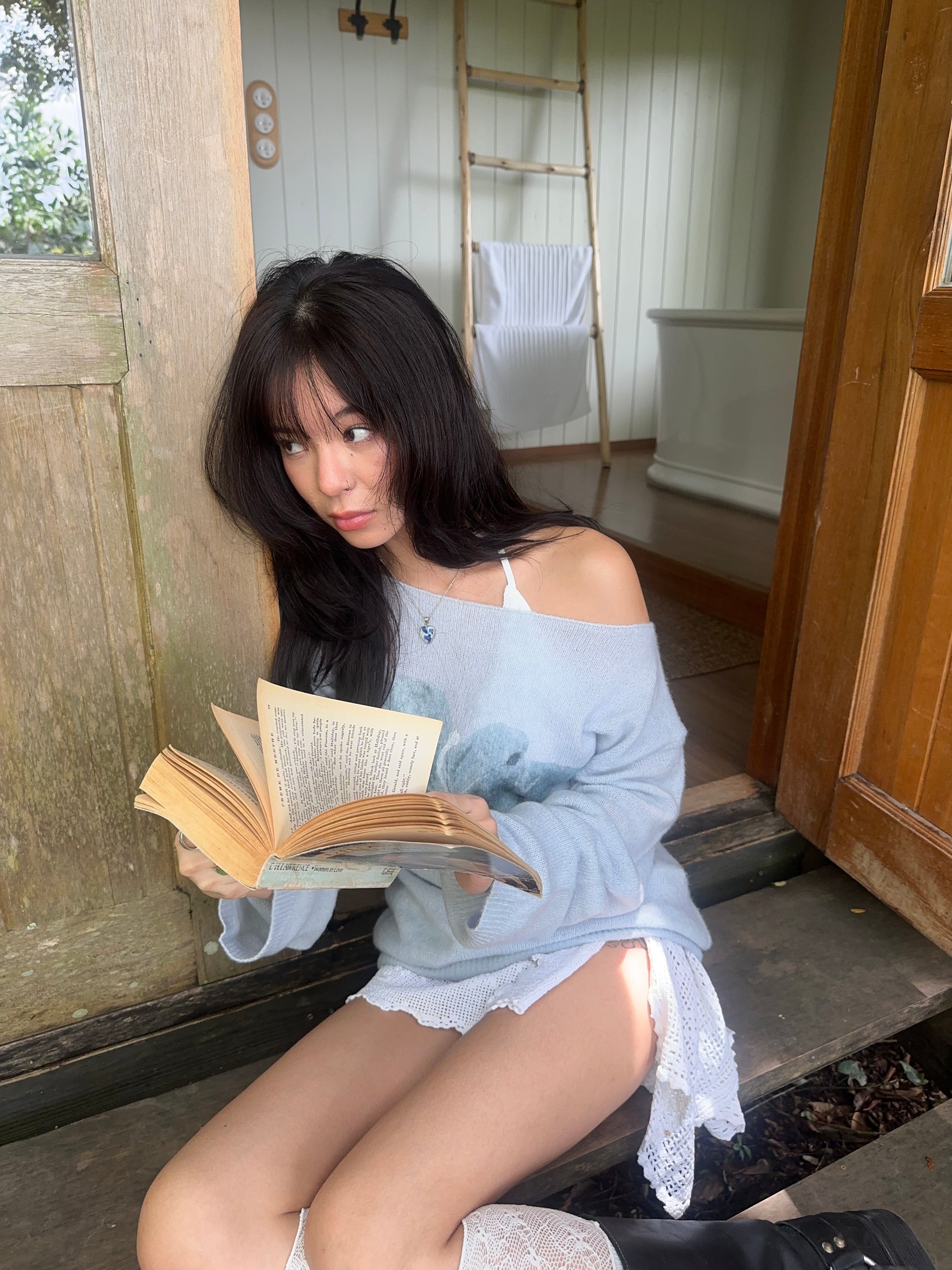 The soft blue brings out a fresh glow, while the beige with pink floral details adds a gentle, feminine feel. Comfortable in warm weather and still cozy when it’s a bit cooler. An easy piece for a simple, pulled-together look 🌺